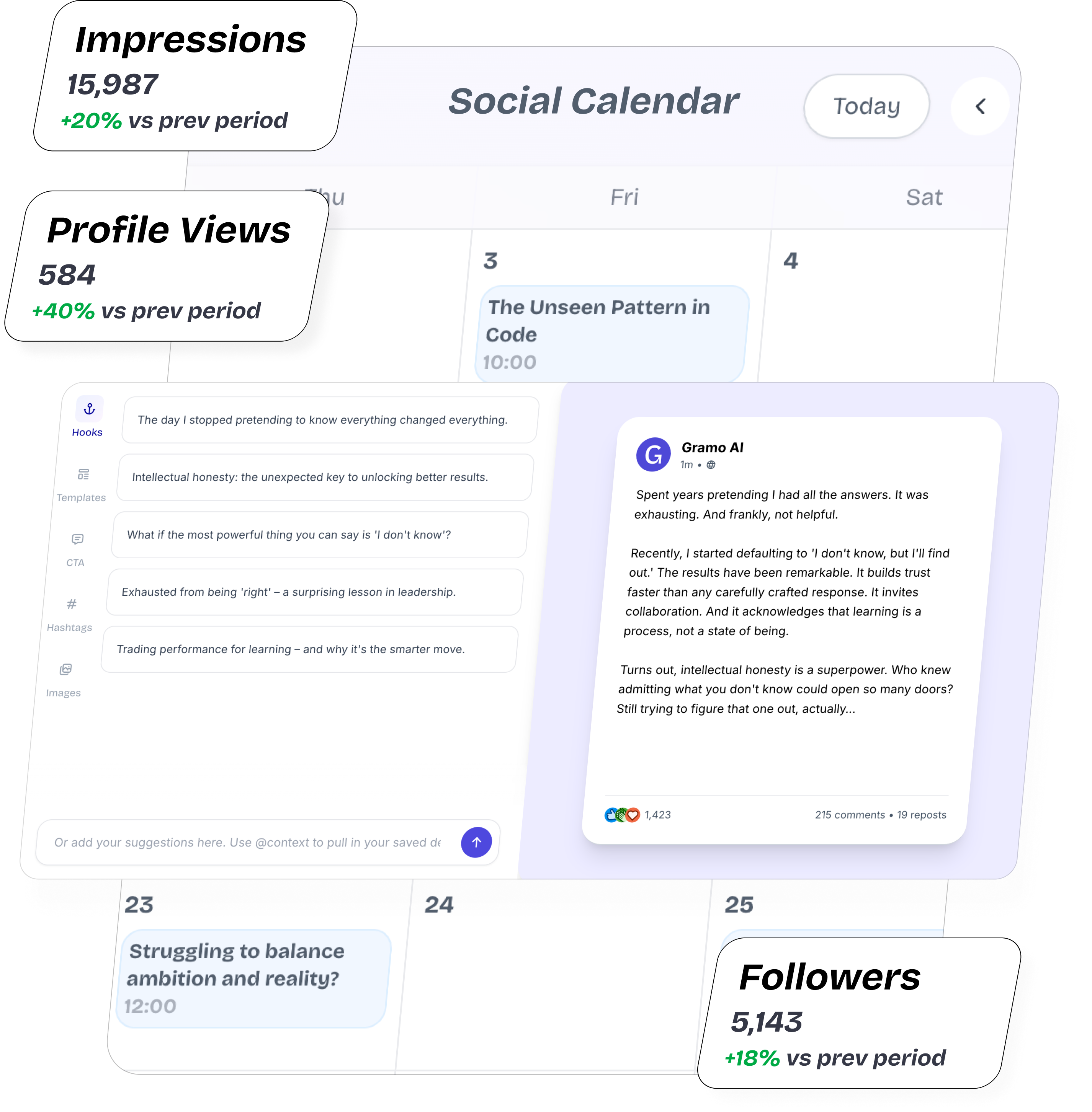 Gramo learns from your hits and misses. Each post makes the next sharper, closer to your voice.